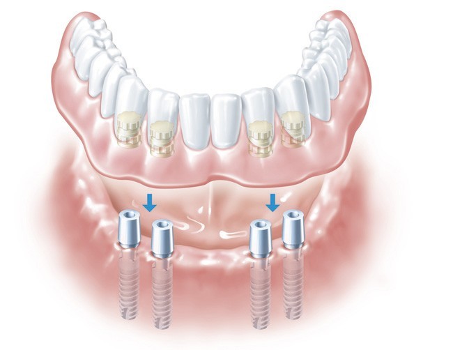 Künstliche Zahnwurzeln hoher Qualität können mittlerweile sehr effektiv die natürlichen Zähne ersetzen. Hierzu wird im ersten Schritt das Implantat-Bett aufbereitet, um anschließend das Implantat (Schraube aus Reintitan) problemfrei im Kiefer zu fixieren - egal ob einzelne Zähne oder ganze Prothesen.